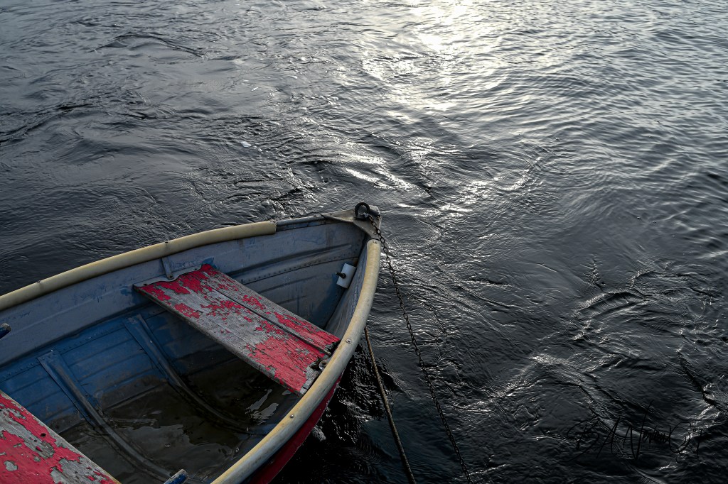 A weathered skiff drifts at the edge of moving water, its peeling red bench and worn hull telling quiet stories of use, time, and tide. Light skims the surface, catching ripples and eddies as the current pulls past with steady purpose. The boat, tethered yet restless, becomes a study in contrast—stillness against motion, texture against reflection. Subtle tones of gray and steel-blue dominate the frame, punctuated by the faded red that hints at human presence now momentarily absent. This image is less about destination and more about pause: a fleeting moment where light, water, and craft meet in calm, understated balance. This image is available for purchase at FineArtAmerica.com.
